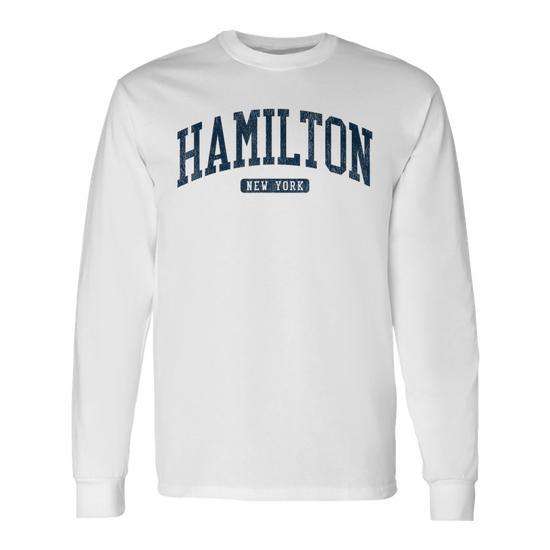 T-shirt a maniche lunghe Hamilton New York stile college blu