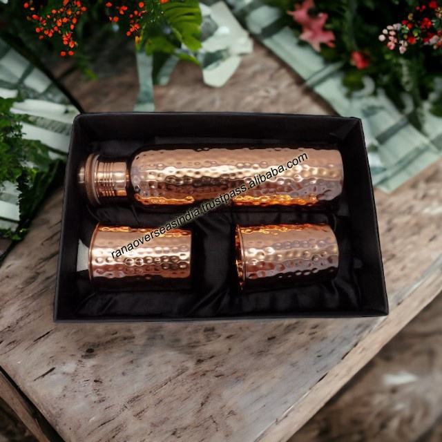 Hammered Pure Water Bottle with 2 Copper Tumbler Set Ayurvedic Health Benefits Ideal Home & Office Use At Wholesale Prices