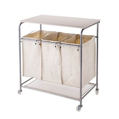Hamper Rolling Dust-proof Laundry Basket Cart Oxford Cloth 3 Grids Cloth Washing Home Laundry Load Dirty Clothes 75*45*75cm 19mm