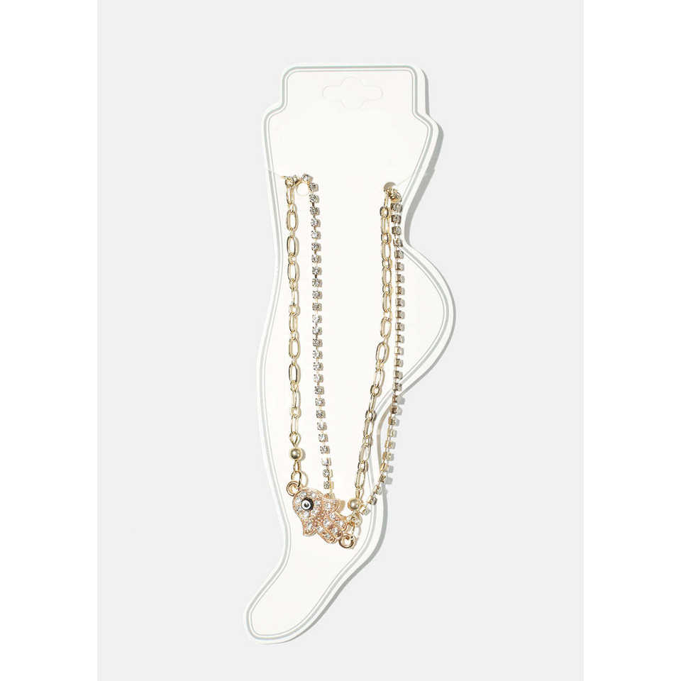 Cavigliera a Forma di Mano di Fatima in Stile Bohémien, Placcata in Oro 18K, Acciaio Inossidabile con Motivo a Catena, Pietra Principale in Moissanite e Perla
