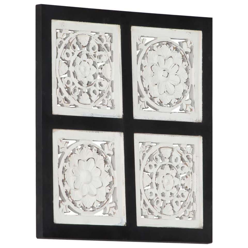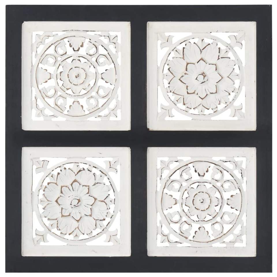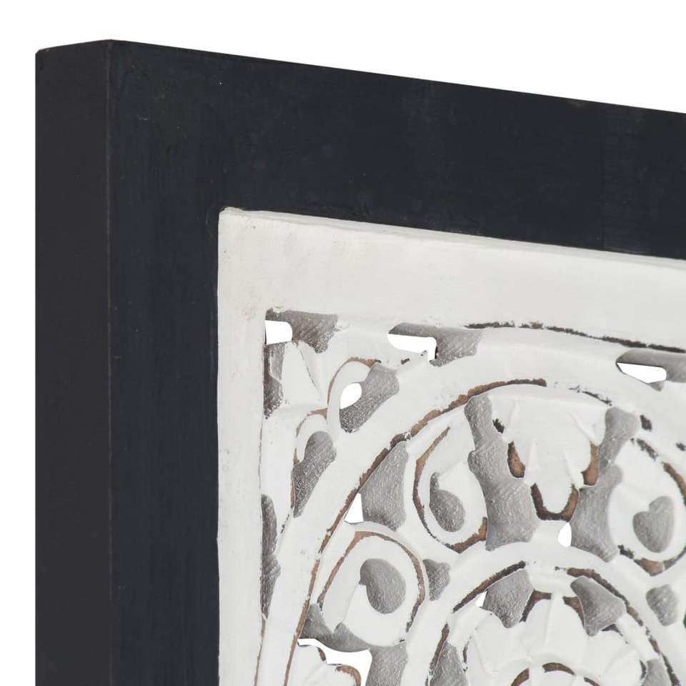 Hand-Carved MDF Wall Panel 15.7\"x15.7\"x0.6\" Black and White
