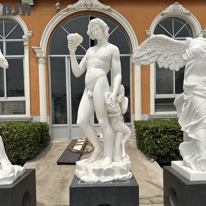 Hand Carved Marble Bacchus Statue Greek Mythology God Statue God of Wine Statue Dionysus Sculpture of Garden Park Decor