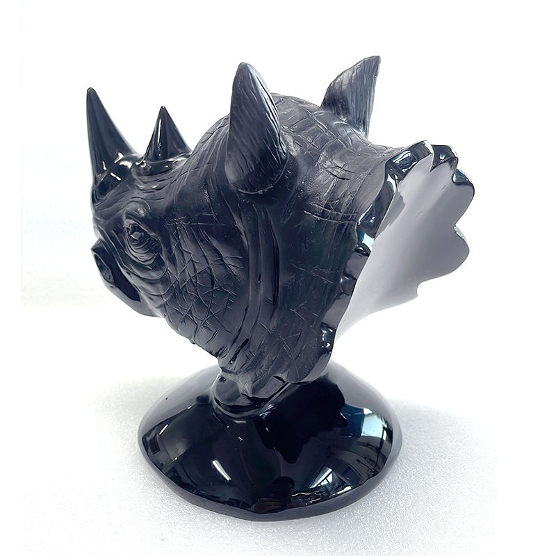 Hand-Carved Natural Black Gemstone Rhinoceros Sculpture Animal Style Garden & Home Decoration Carving Crafts