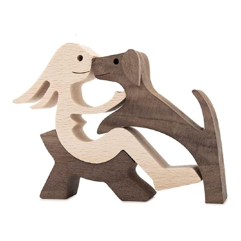 Hand Carved Wooden Woman and Dog Statue, Home Office Decor Wood Human Dog Sculpture, Unique Gift for Dog Lovers to Remember