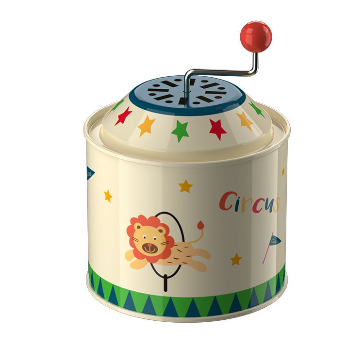 Round metal vertical hand crank kids tin music box
