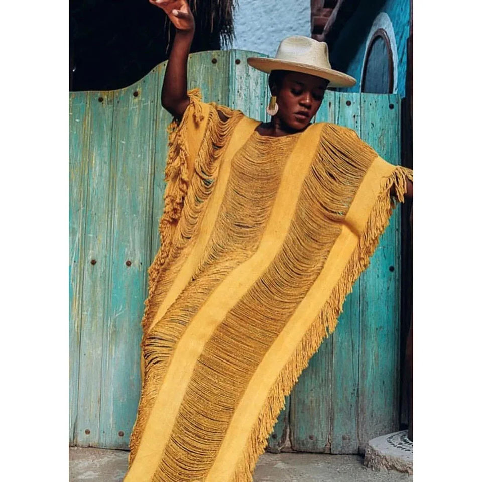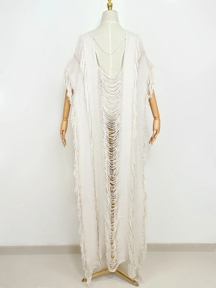 Hand Crochet Tunic Bikini Cover-ups Sexy Hollow Out Long Dress Women Summer Clothes Tassel Beach Wear Parent-Child Cover up