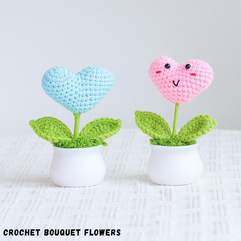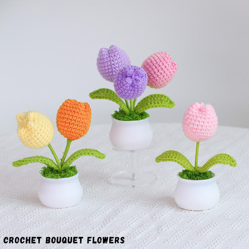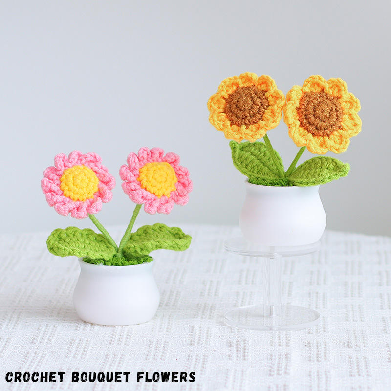 Fiori in Cotone Lavorati a Mano all'Uncinetto e Piante in Vaso Artificiali con Vasi Lavorati a Mano all'Uncinetto Artigianato Tessile e di Stoffa