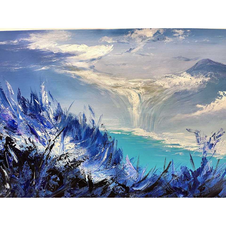 Hand-Painted 100% Abstract Modern Snow Mountain Landscape 36in X 24in Oil Paintings on Canvas Handmade Printing