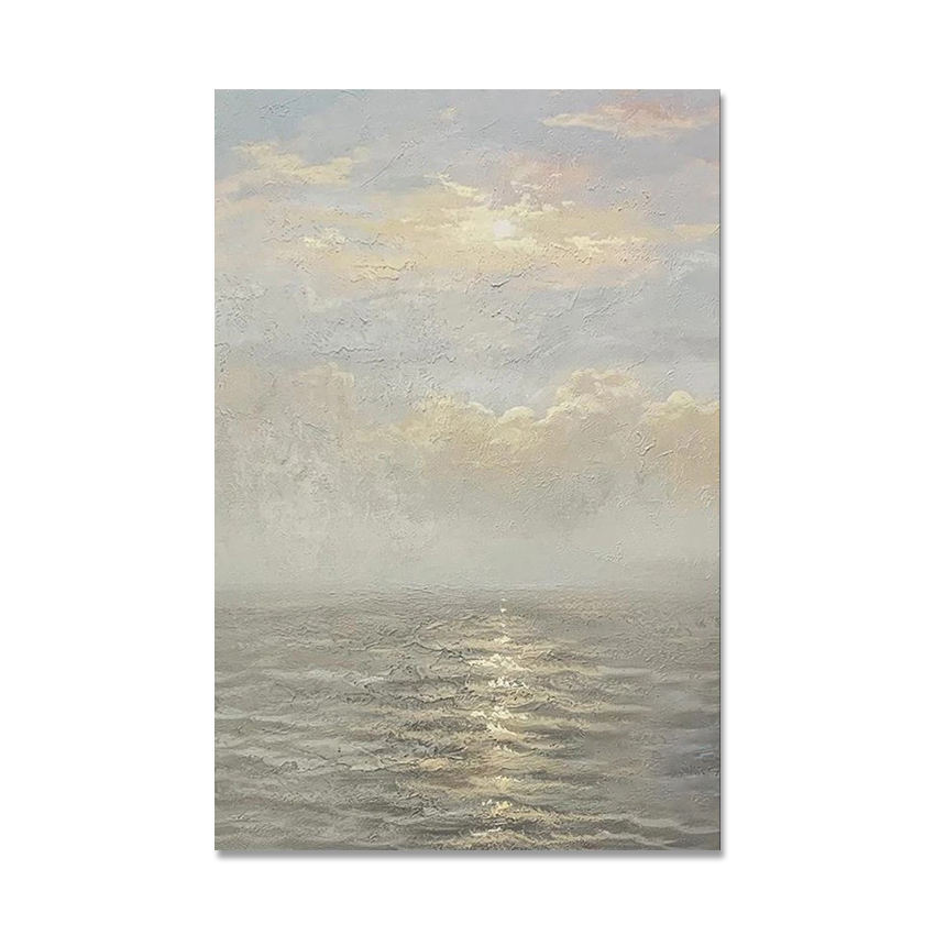 Caratteristica:Pittura a olio di paesaggio marino fatta a mano tramonto arte spiaggia