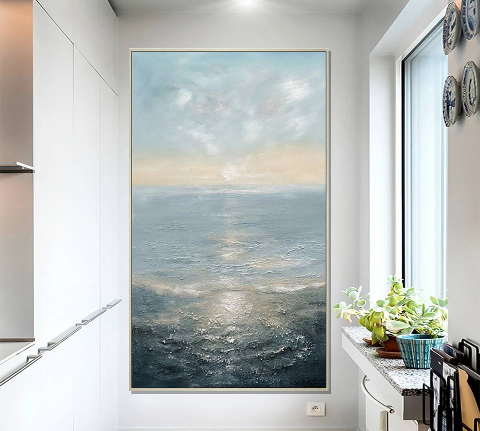 Nome:Pittura a olio di paesaggio di mare arte del tramonto di arte della spiaggia di arte della parete