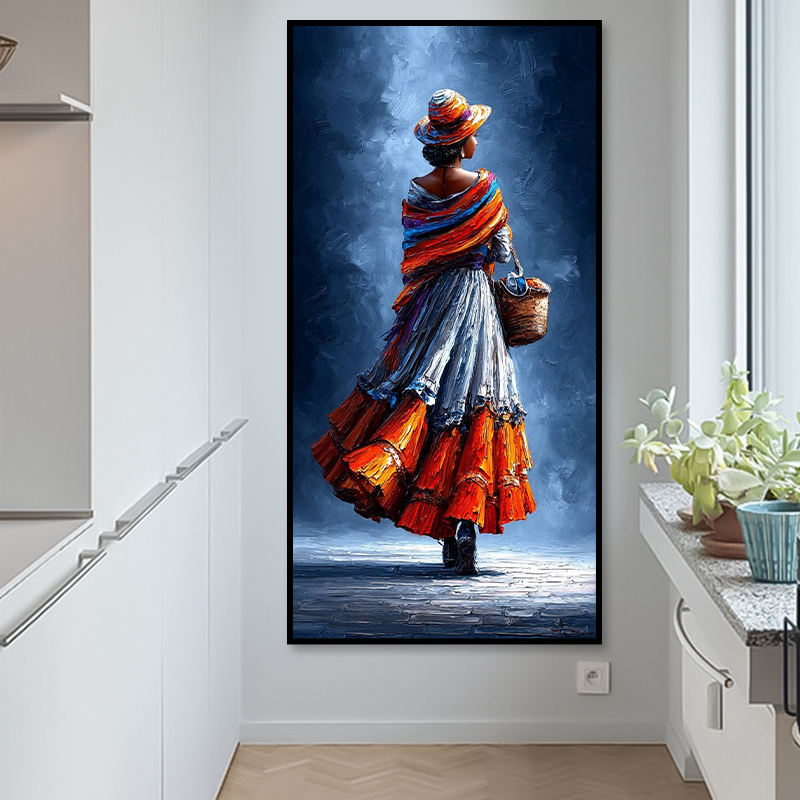 Hand-Painted Ethnic Woman Oil Painting - 40x80cm Vertical Palette Knife Canvas Art for Living Room