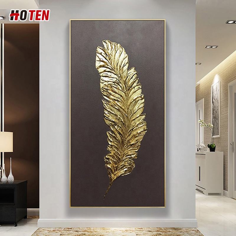 Dipinto a mano Golden Dream piuma astratta paesaggio pittura a olio decorazione per la casa tela opera d'arte dell'artista