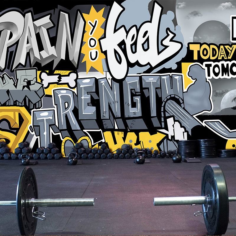 Hand-Painted Industrial Style Wallpaper for Gym Waterproof English Club Decoration Background Wall Mural