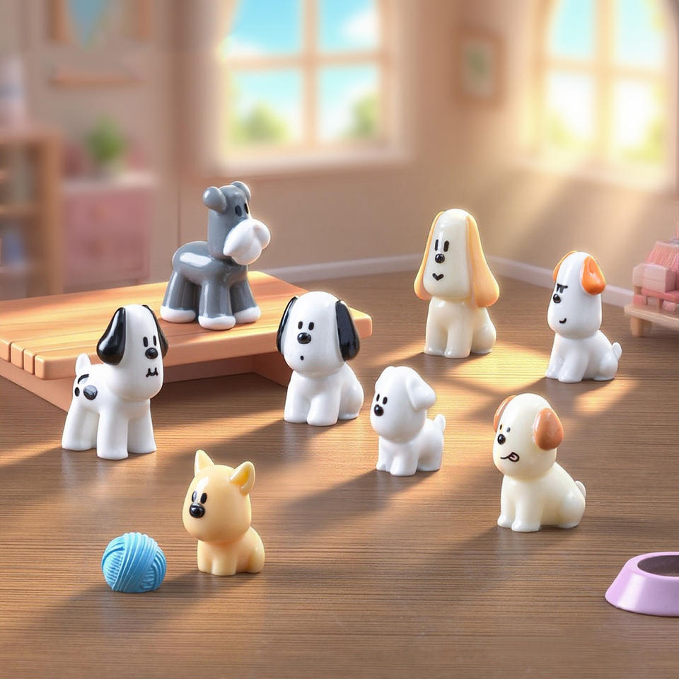 Statuette di Cani in Miniatura Dipinte a Mano in Resina, Realistiche Figurine di Animali per Decorazioni Torte, Giardini Fatati e Casa