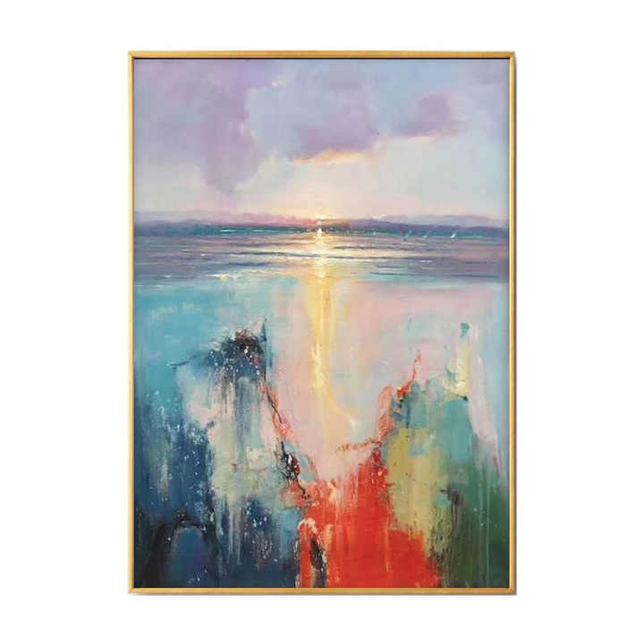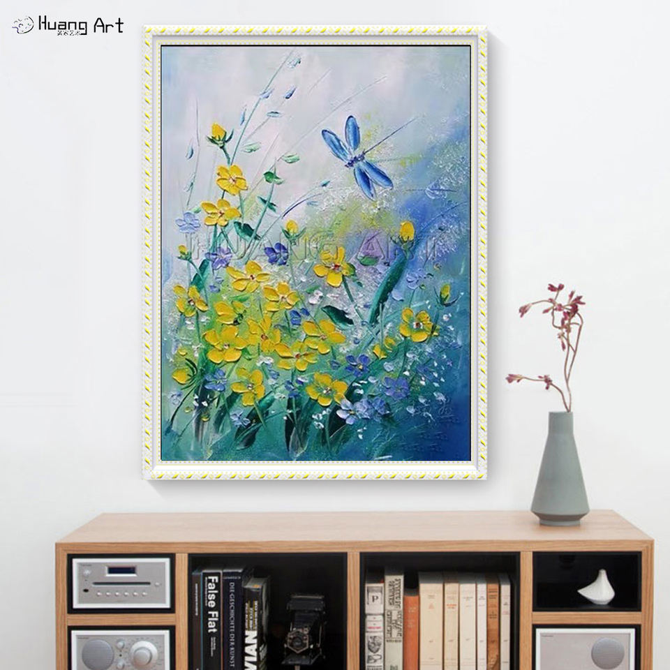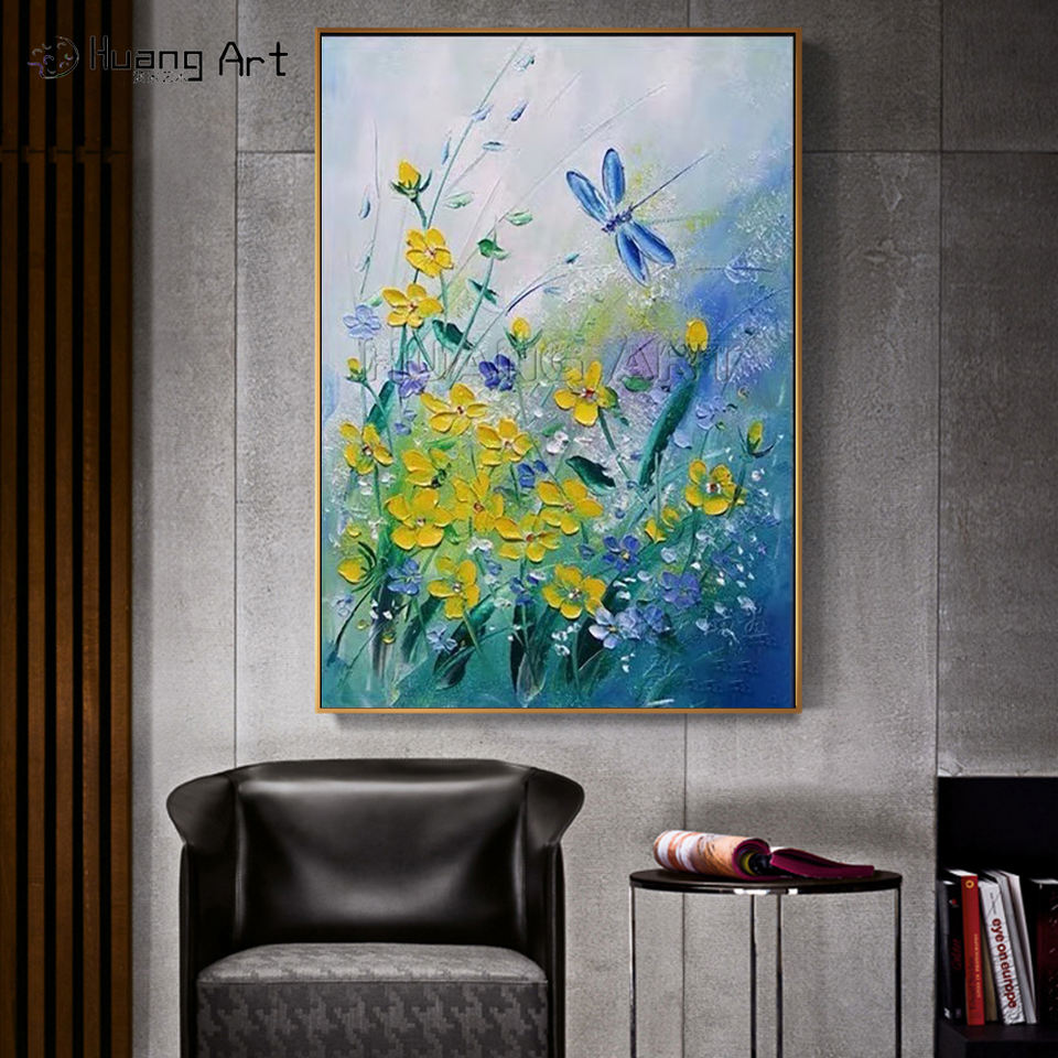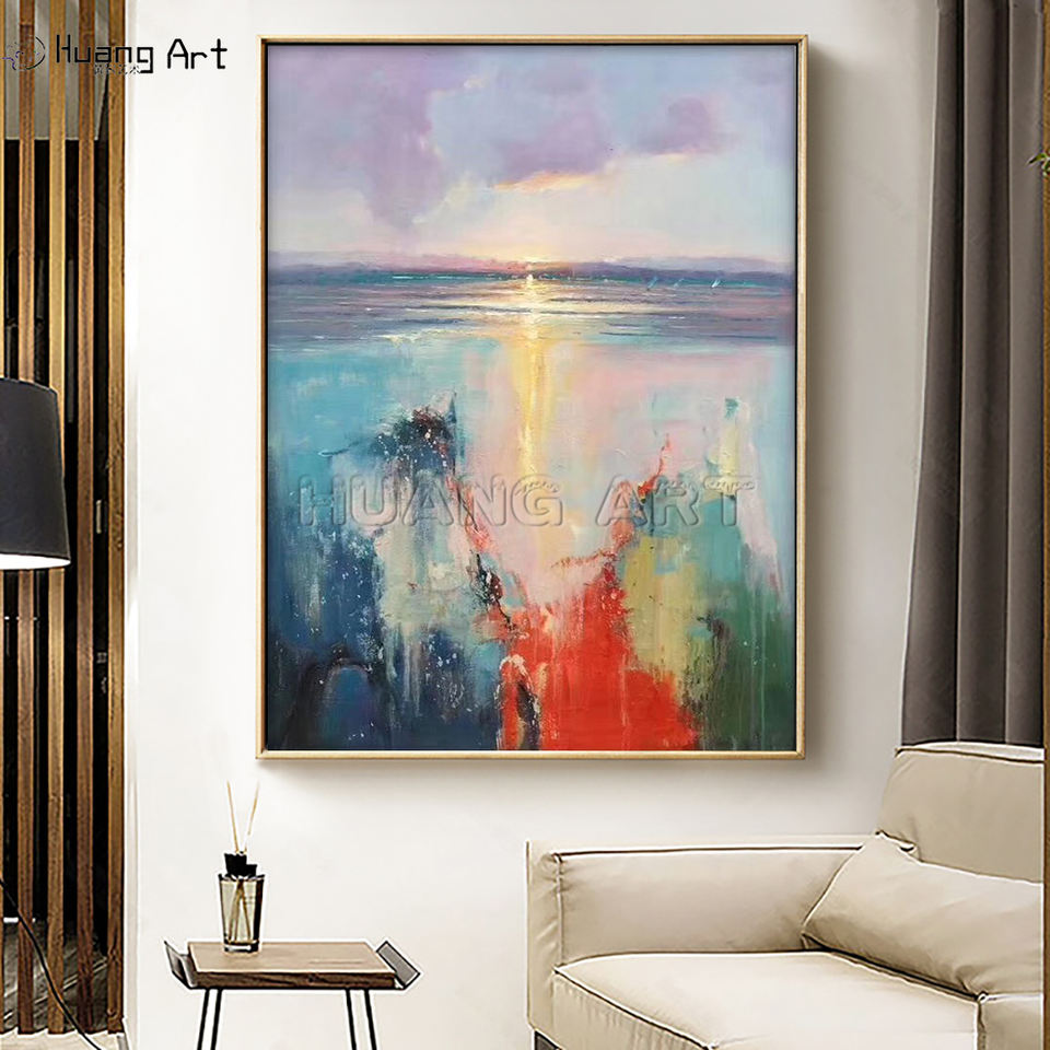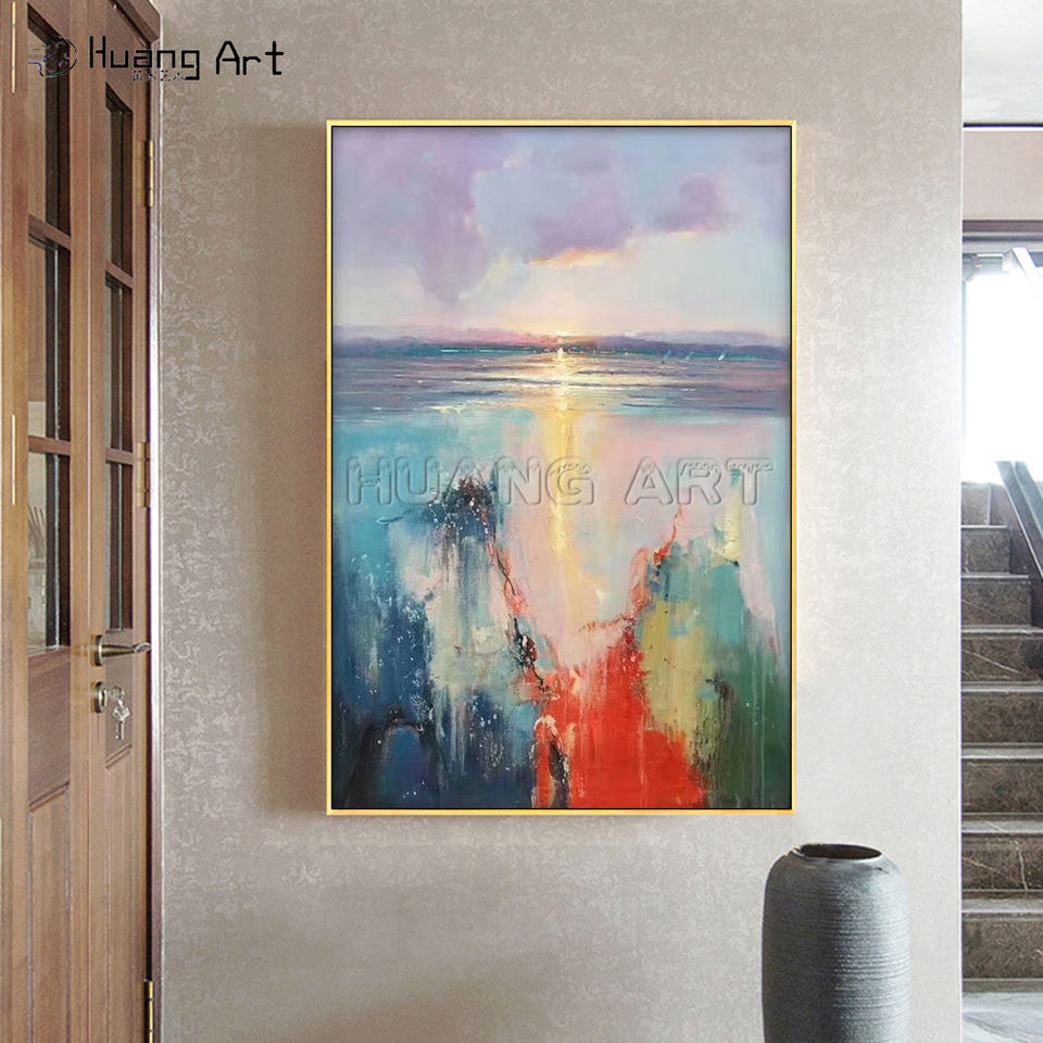 Dipinto a mano moderna tela di olio astratto alba mare paesaggio con fiori gialli decorazione della parete immagine stampa fatta a mano