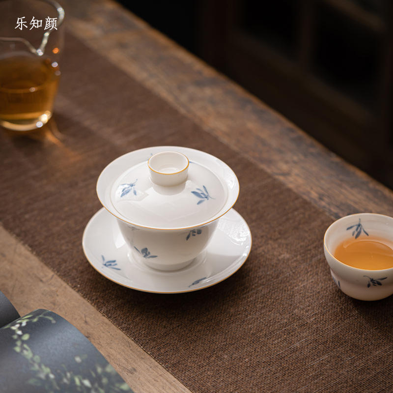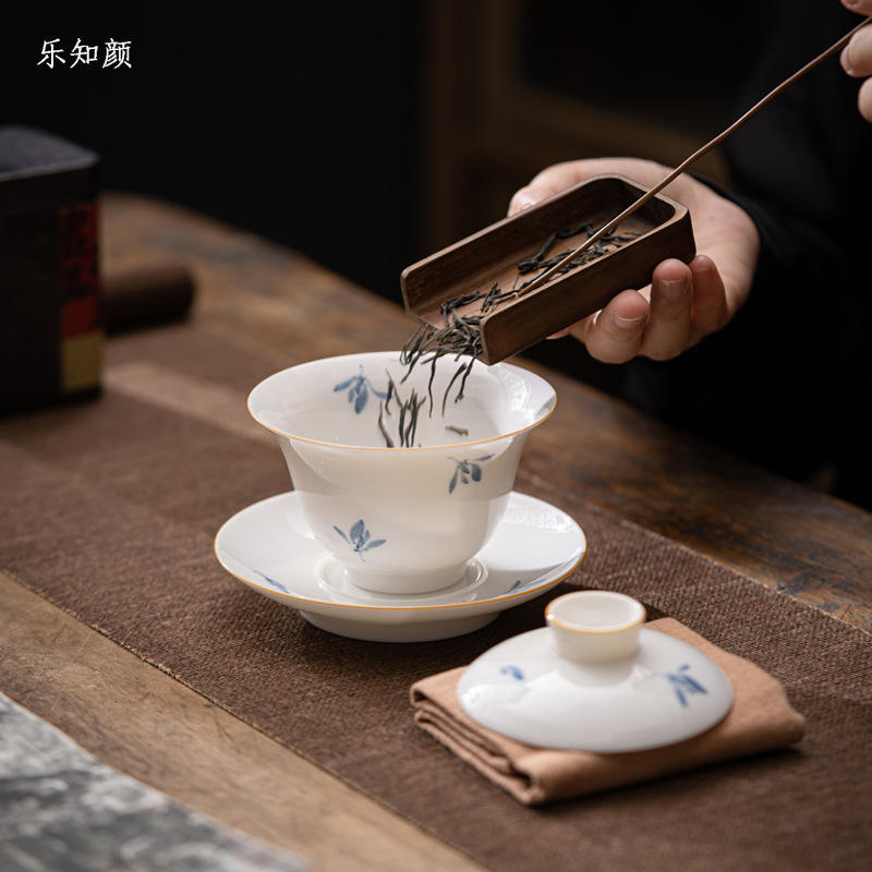 Dispositivo per la preparazione del tè in ceramica di Phalaenopsis Gaiwan Kung Fu Set da tè Anti-scottatura per uso domestico