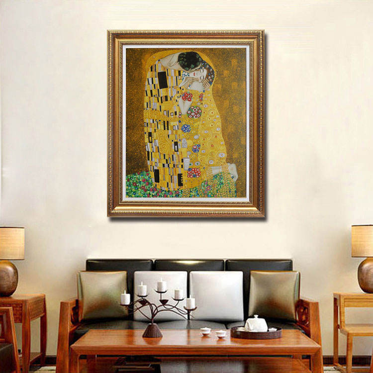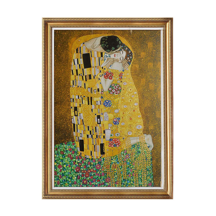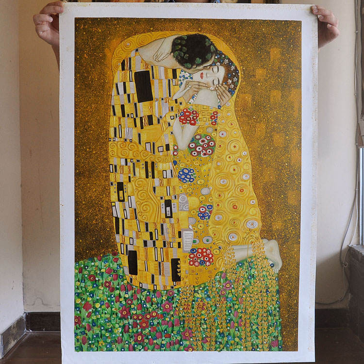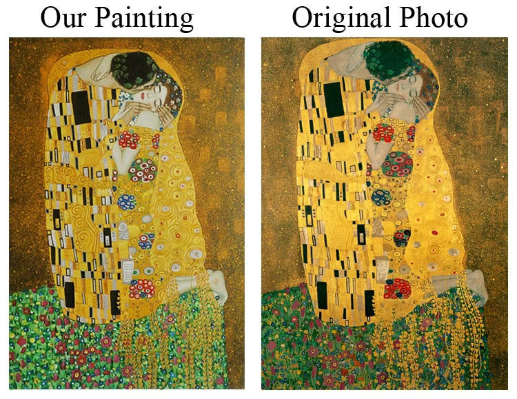 Hand Painted Replica Wall Art Canvas Famous Artwork The Kiss By Gustav Klimt Oil Painting