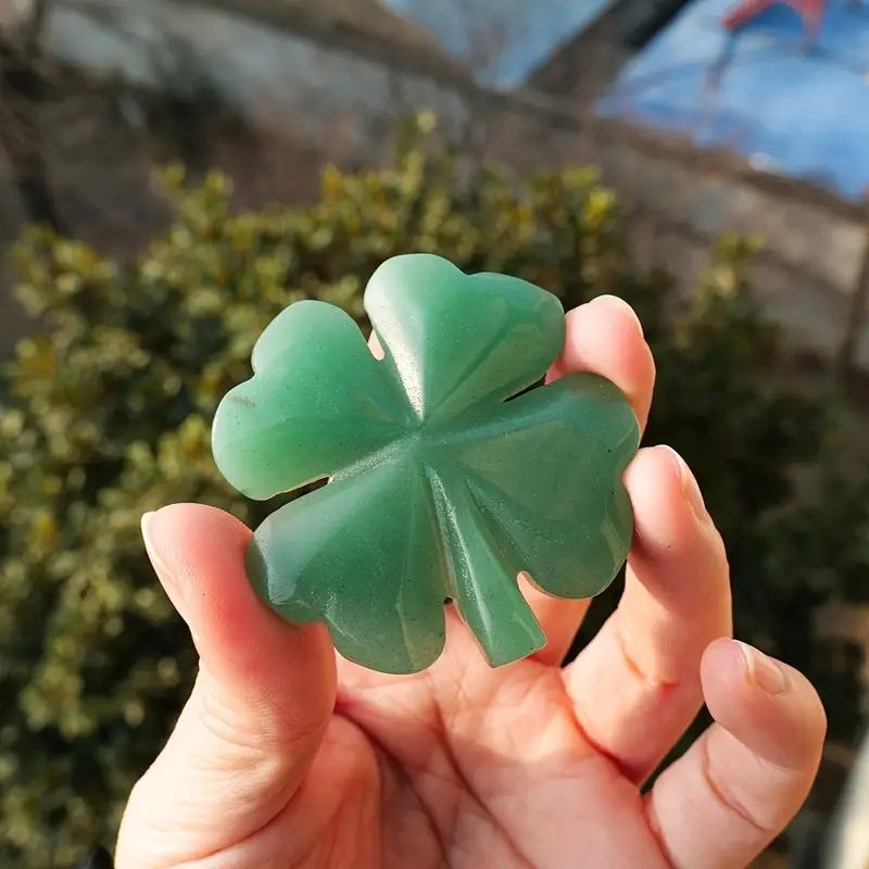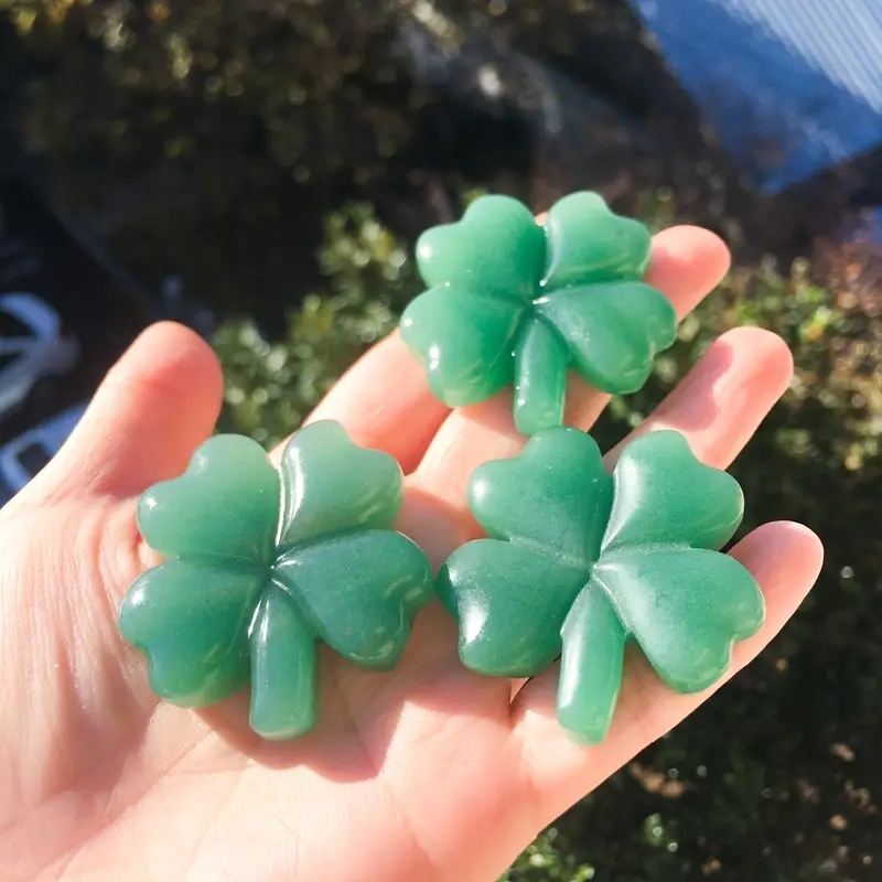 Hand-Polished Natural Crystal Green Aventurine 1pc Four-Leaf Clover Engraving Raw Stone Home Decoration for Good Luck