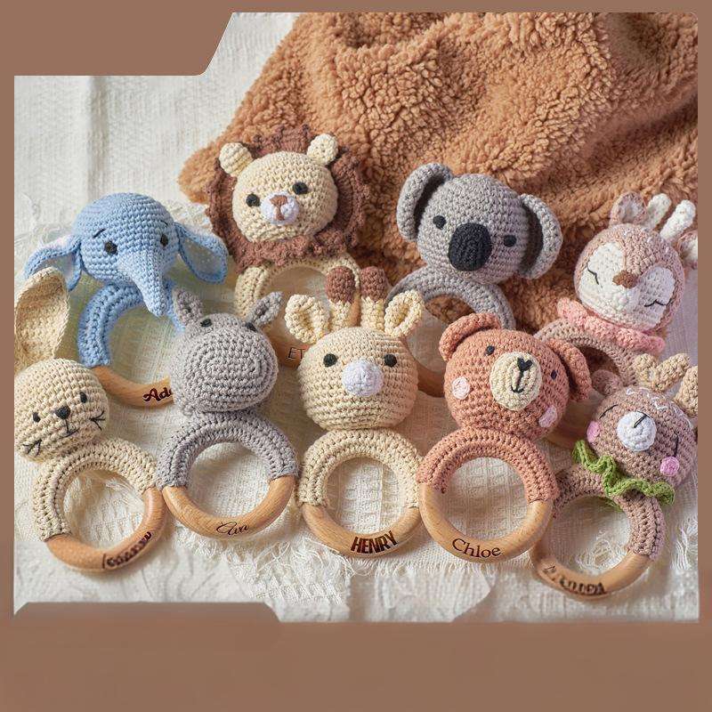 Sonaglio a Uncinetto Fatto a Mano per Neonato a Forma di Animale Pupazzo Lavorato a Maglia Stile Cartone Animato Giocattolo Calmante da Mordicchiare a Forma di Coniglio Idea Regalo