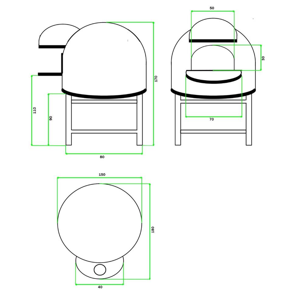 Forno a Legna Artigianale da 120 cm di Diametro, Rosso Unico con Base, Capacità 5 Pizze, Utensile da Cucina per Esterni