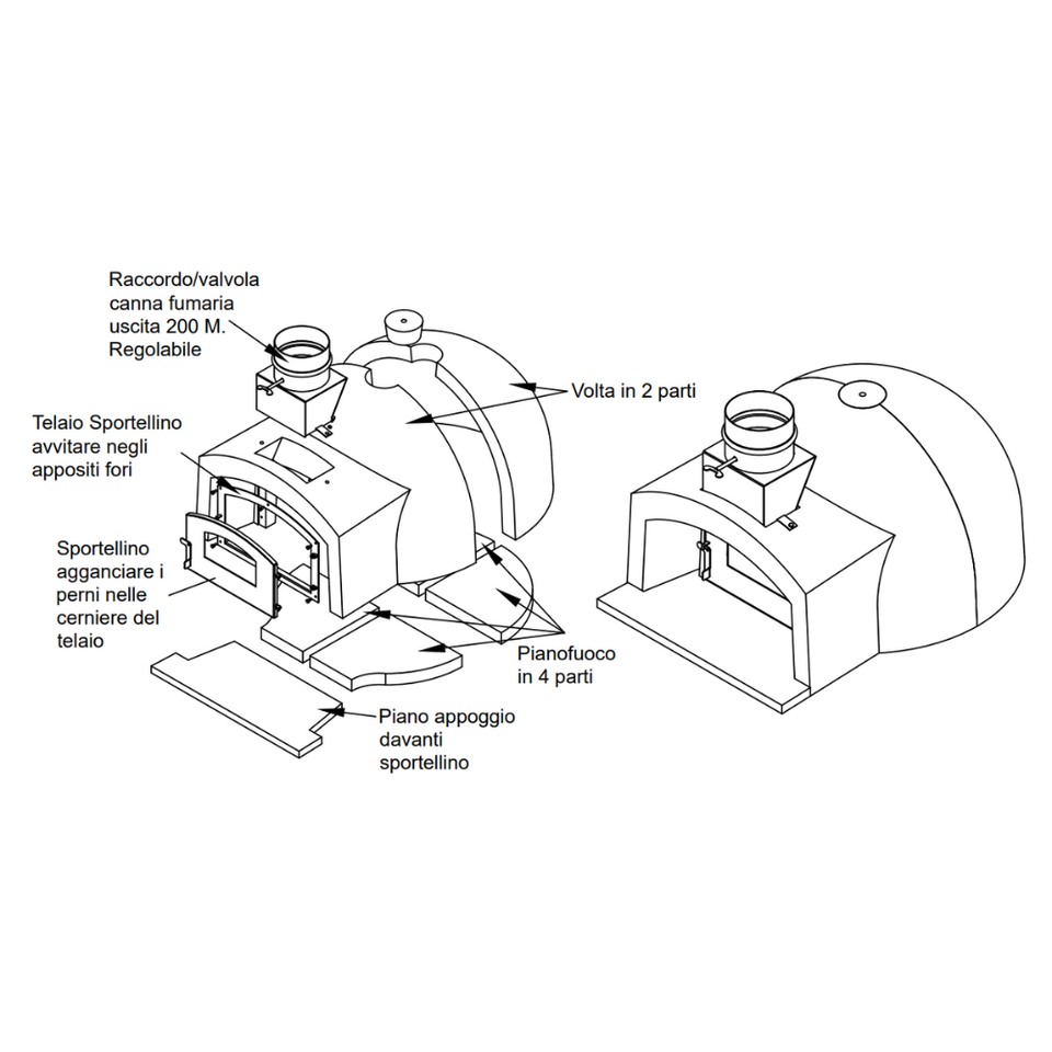 Forno in Legno Artigianale da 80 cm per Cottura Diretta, Capacità 2/3 Pizze per Tostare e Cuocere