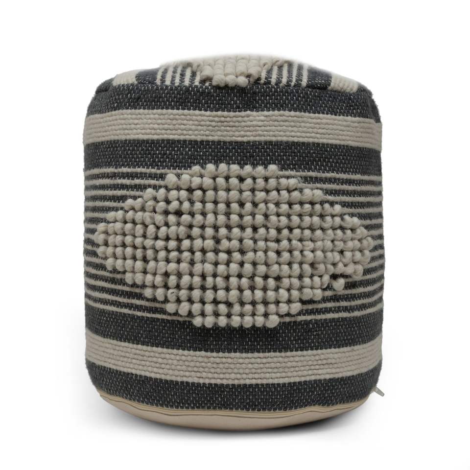 Handcrafted Diamond Fabric Cylindrical Pouf Beige and Dark Grey