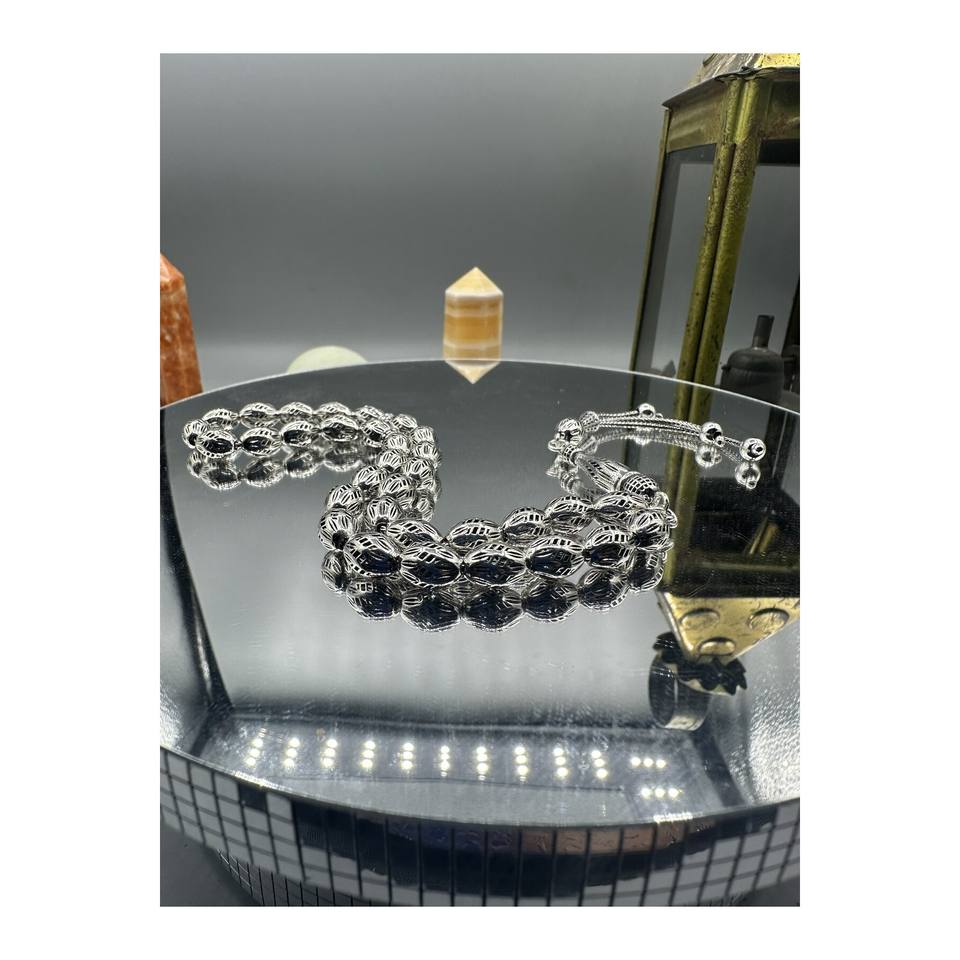 Turkish Full 925 Sterling Silver Two-Strand Beaded Cuff Bracelet 18 cm 15 Gram ID 6060