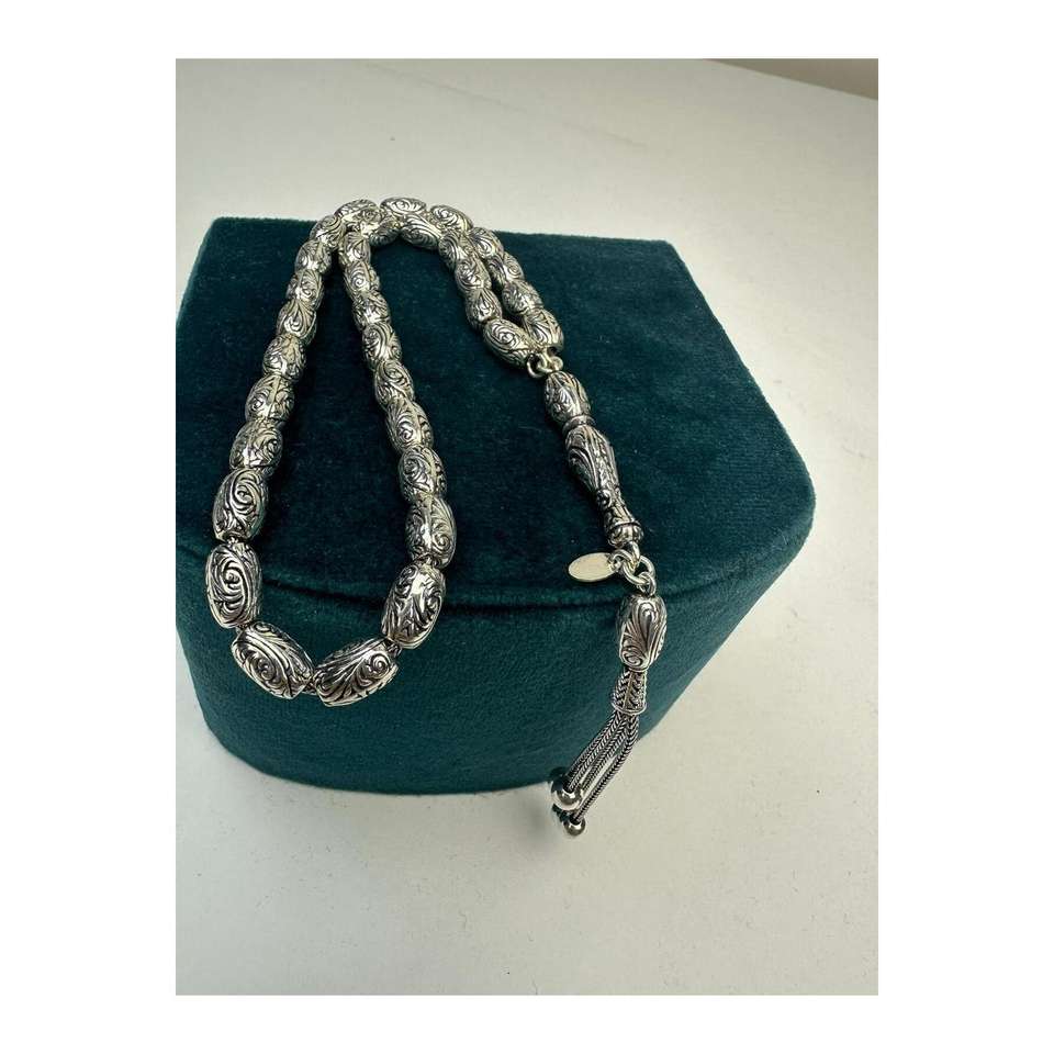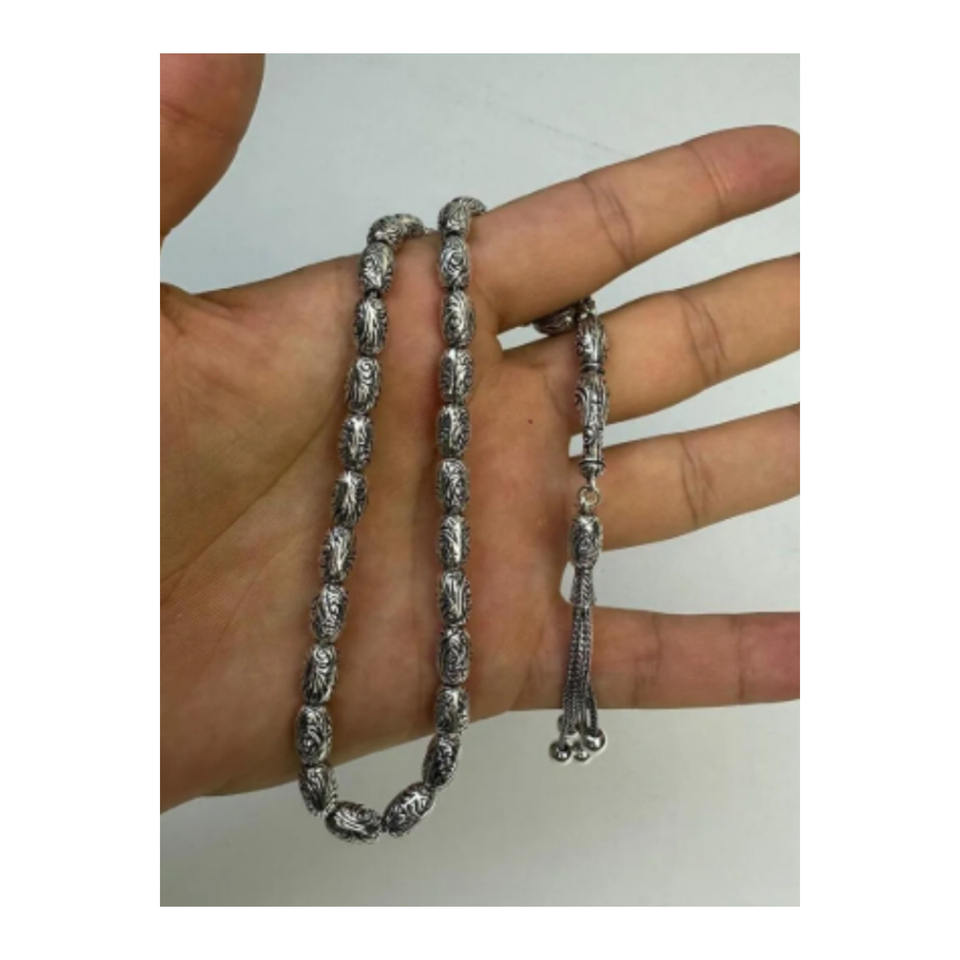 Perle di Preghiera Artigianali in Argento Leggero ed Elegante con Incisioni a Mano - Argento Sterling 925, 35 grammi, 26 cm