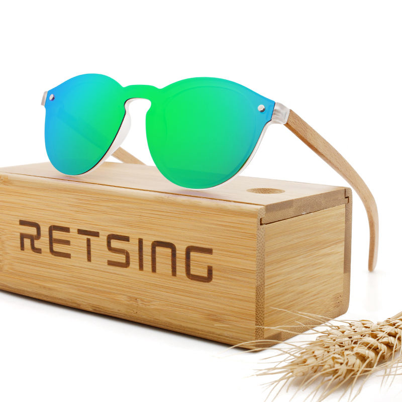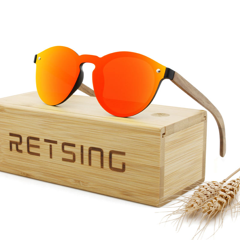 Occhiali da Sole Artigianali Monoblocco con Aste in Legno Naturale, Lenti Polarizzate TAC e Protezione UV/Antiriflesso