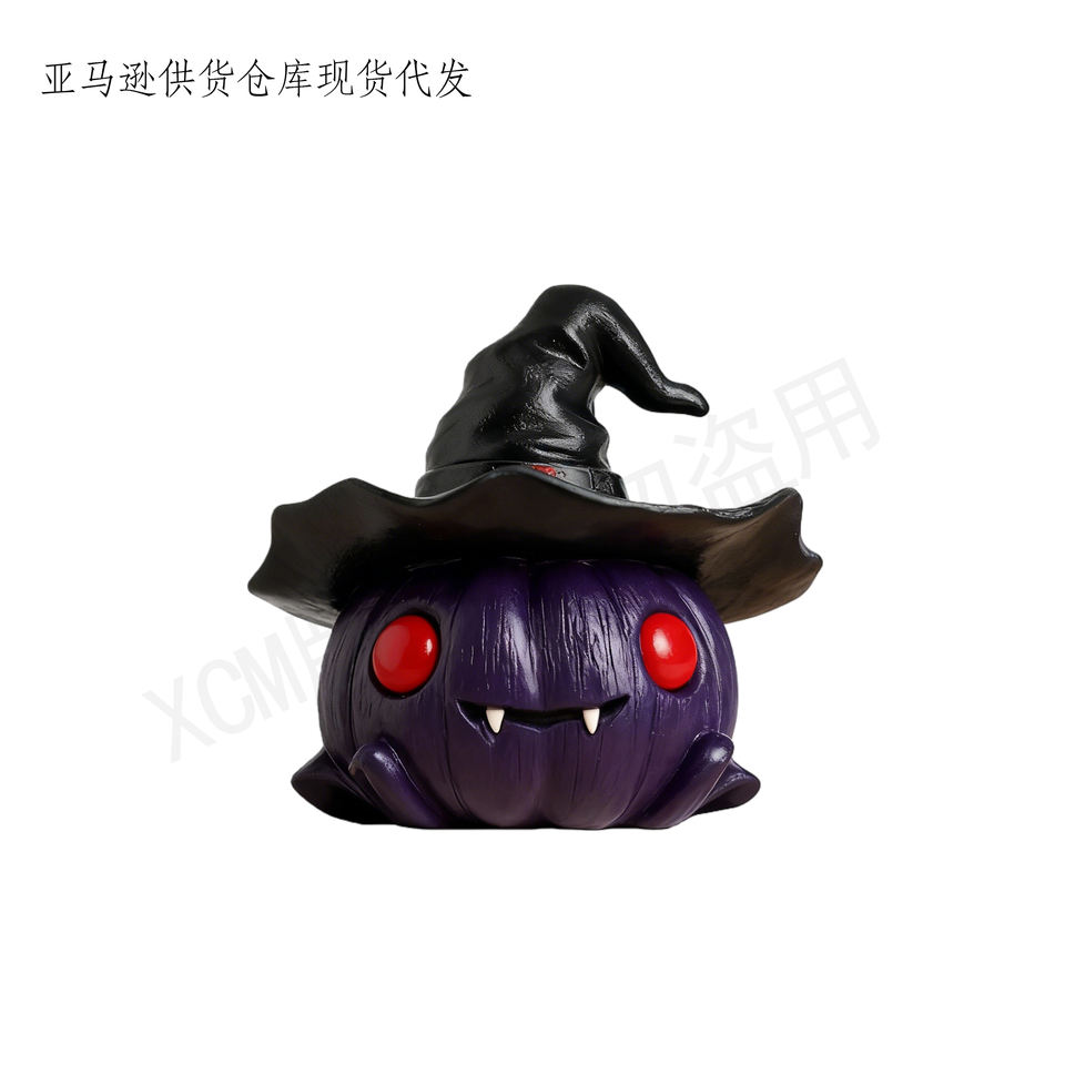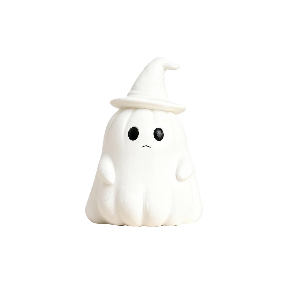 Handcrafted Spooky Cute Ghost Pumpkin Figurine with Witch Hat Custom Polyresin Halloween Decor for Home Office Retail Displays