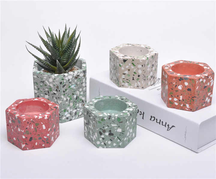 Handcrafted tabletop tealight candle holders cheap terrazzo succulent small pot Brown box or as require.