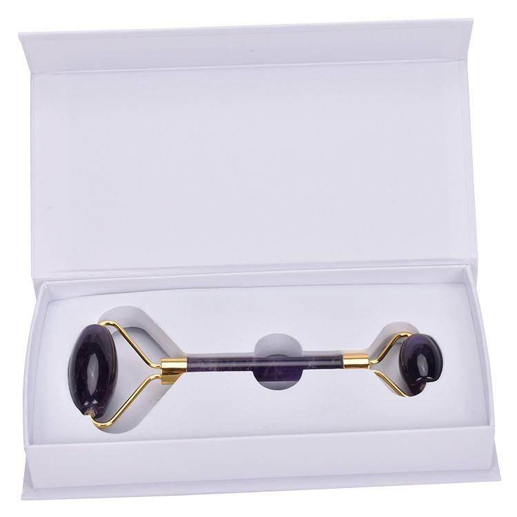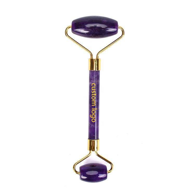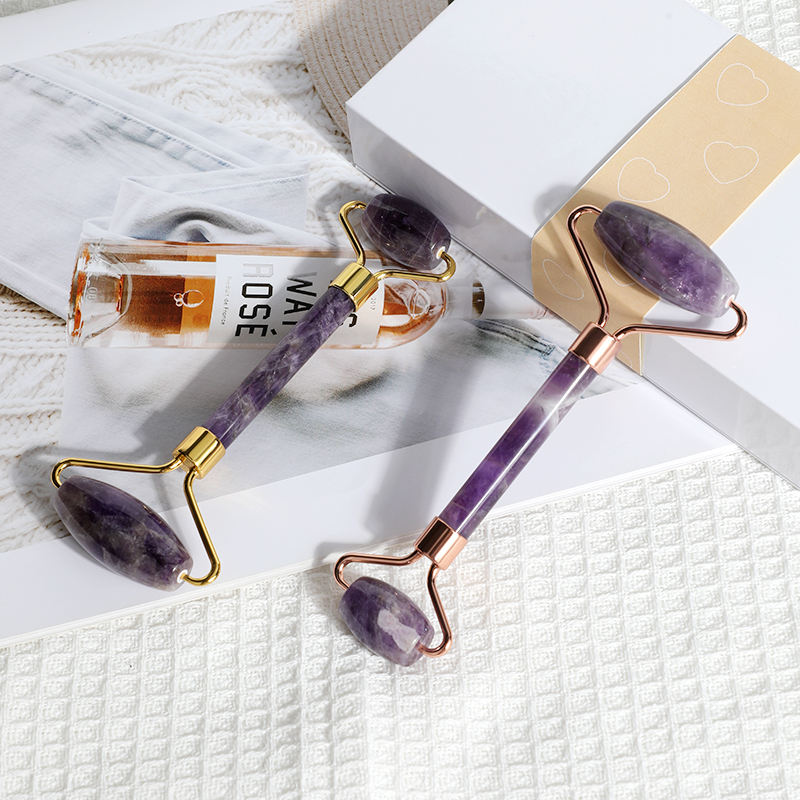 Handheld Beauty Anti-Aging Natural Amethyst Double Rollers Cool Portable Face & Neck Massage Facial Roller