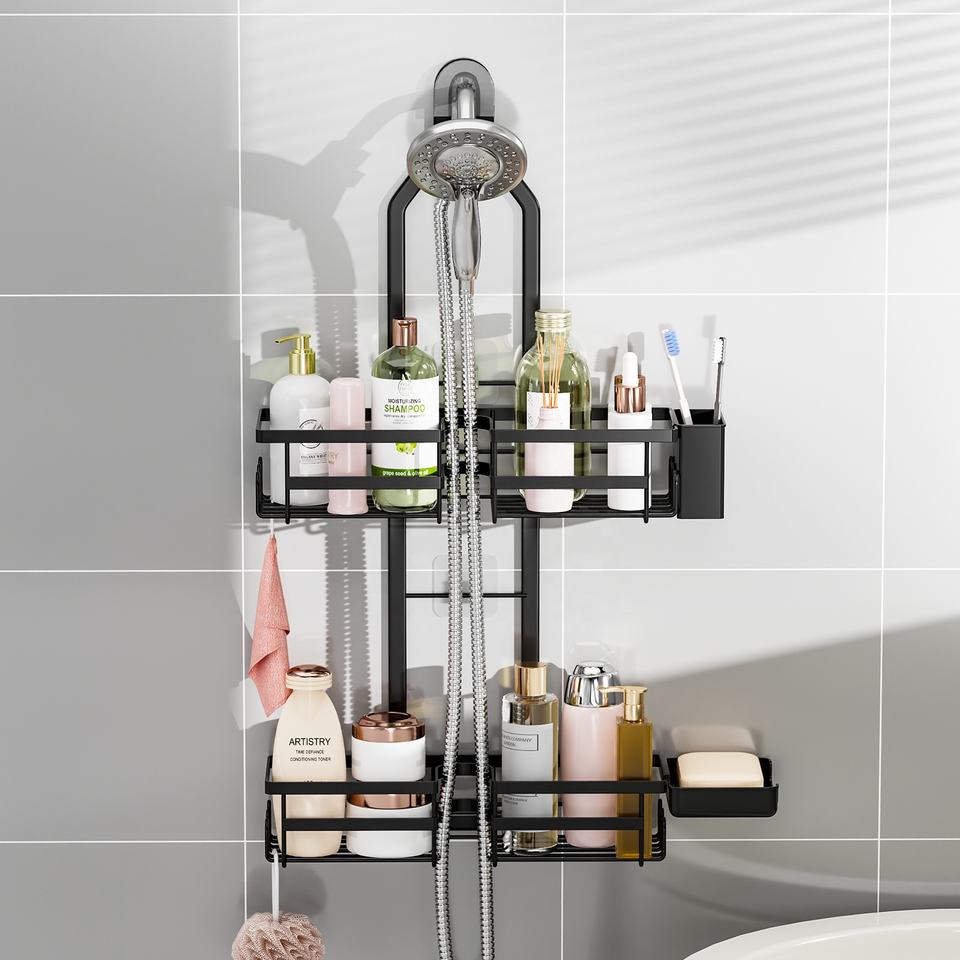 Organizzatore per Doccia in Metallo Nero con Portasapone, Supporto Appendibile per Doccia