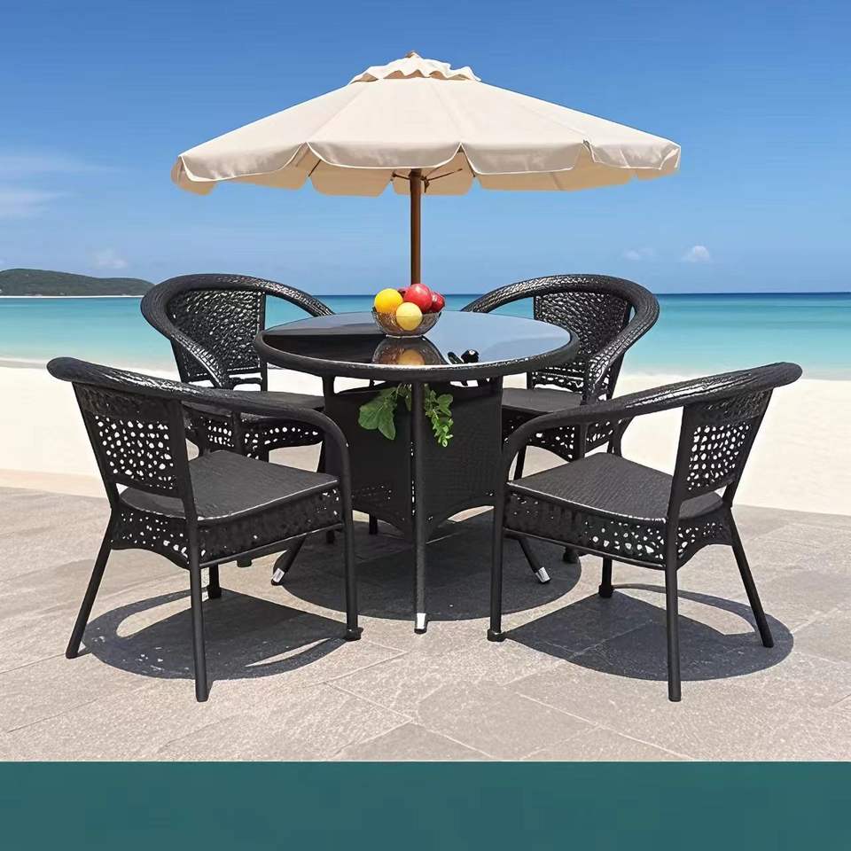 Poltrona da Giardino Artigianale con Schienale Alto in Ferro Antico, Intreccio in Rattan/Vimini, Design Moderno, Resistente, Impermeabile, Impilabile, per Hotel