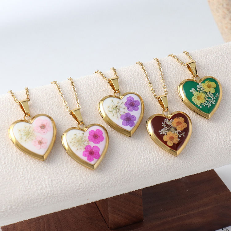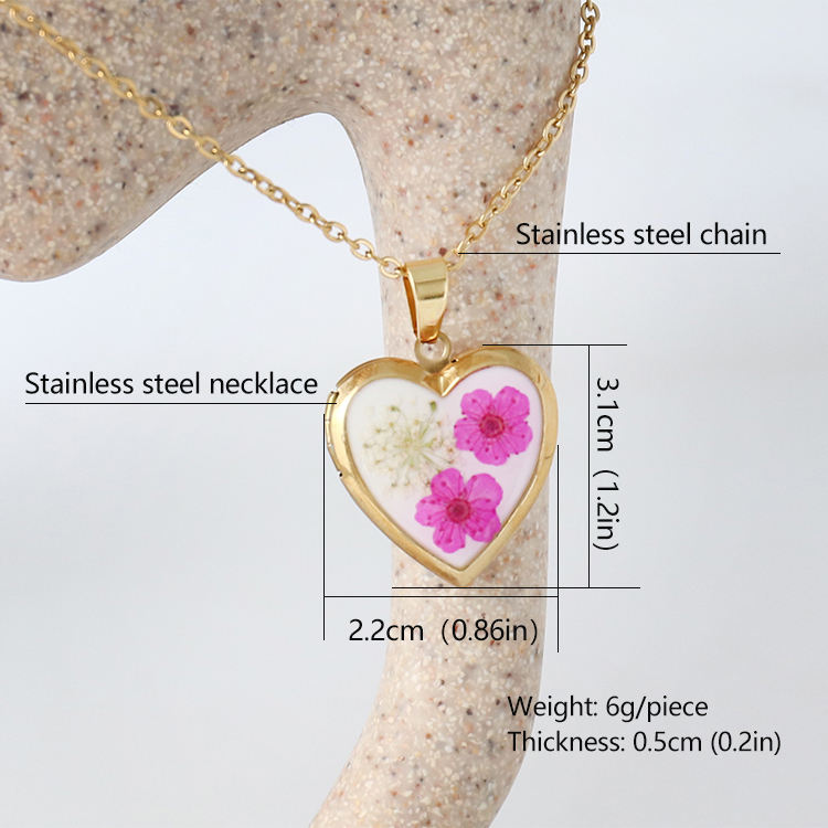 Handmade 18K Gold Plated Heart Dried Pressed Forget Me Not Flower Photo Locket Stainless Steel Jewelry Memory Pendant Necklace