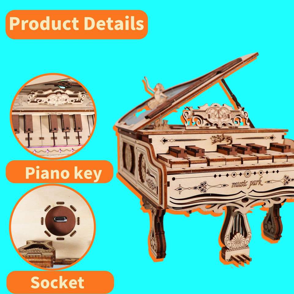 Puzzle 3D in Legno Fatto a Mano, Kit di Costruzione Fai-da-Te Modello di Pianoforte per Regali di Festività, Compleanni e Natale