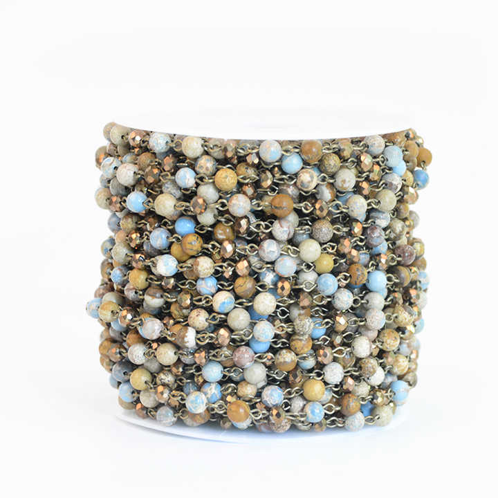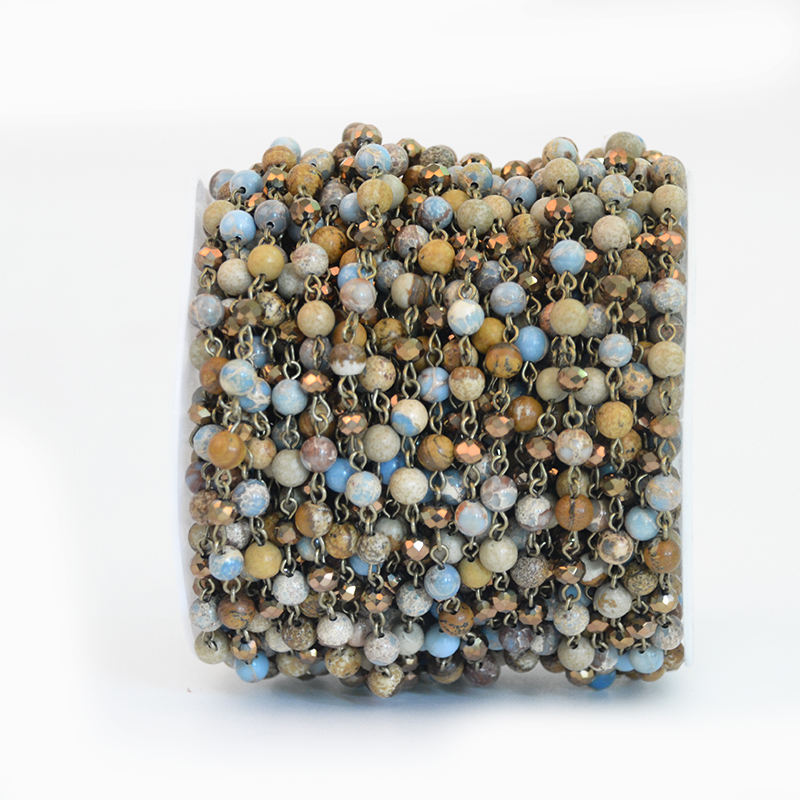 Catena di perline del rosario personalizzata fatta a mano da 6 mm con pietre naturali e cristalli combinati con rotolo di perno in bronzo antico