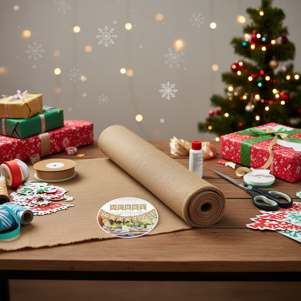 Tessuto in iuta fatto a mano, 63 pollici (15 piedi), materiale semplice per artigianato, per confezioni regalo di Natale, progetti tessili fai da te