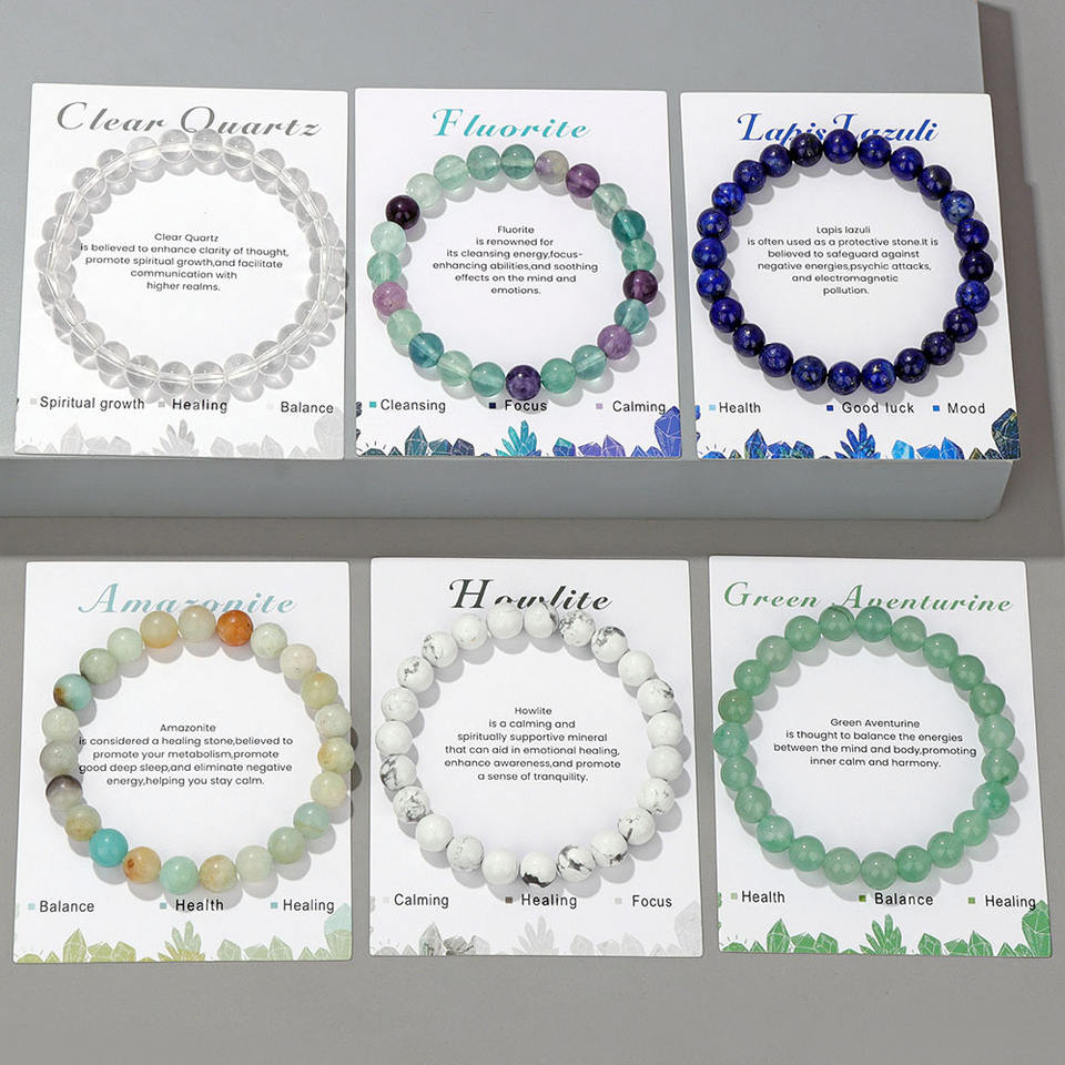 Fatto a mano 8mm naturale occhio di tigre ametista turchese pietra di quarzo con perline di cristallo con carta per le donne uomini gioielli regalo
