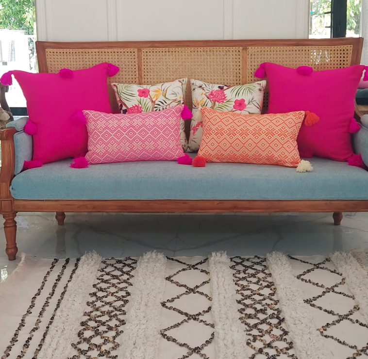 Handmade Berber Fuchsia Organic Cotton Jute Pillow and Cushion Cases Moroccan Design Style with Tassels for Hotel & Home Decor