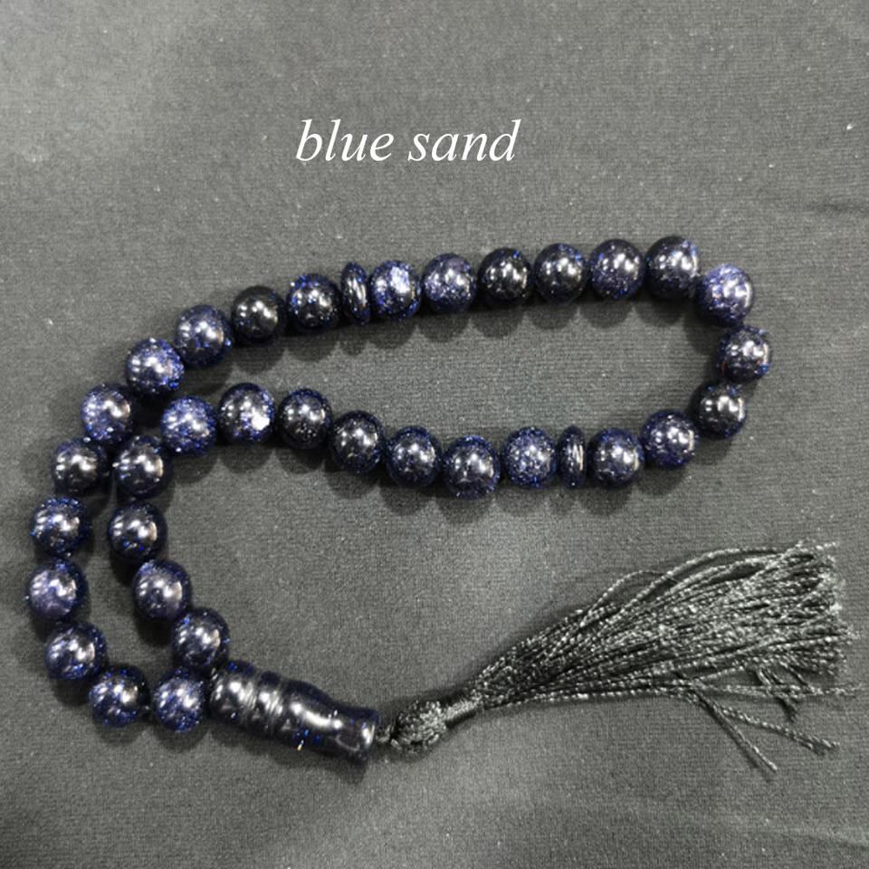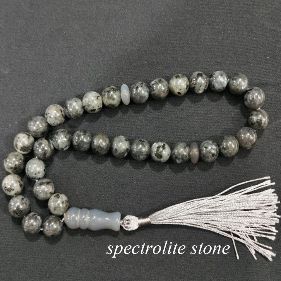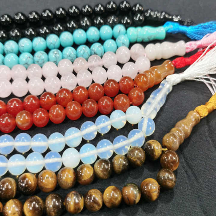 Bracciale/Collana Tasbih Artigianale Boho con 33 Perle in Pietre Naturali (Quarzo Rosa, Agata) per Preghiera Islamica Musulmana, con Nappa