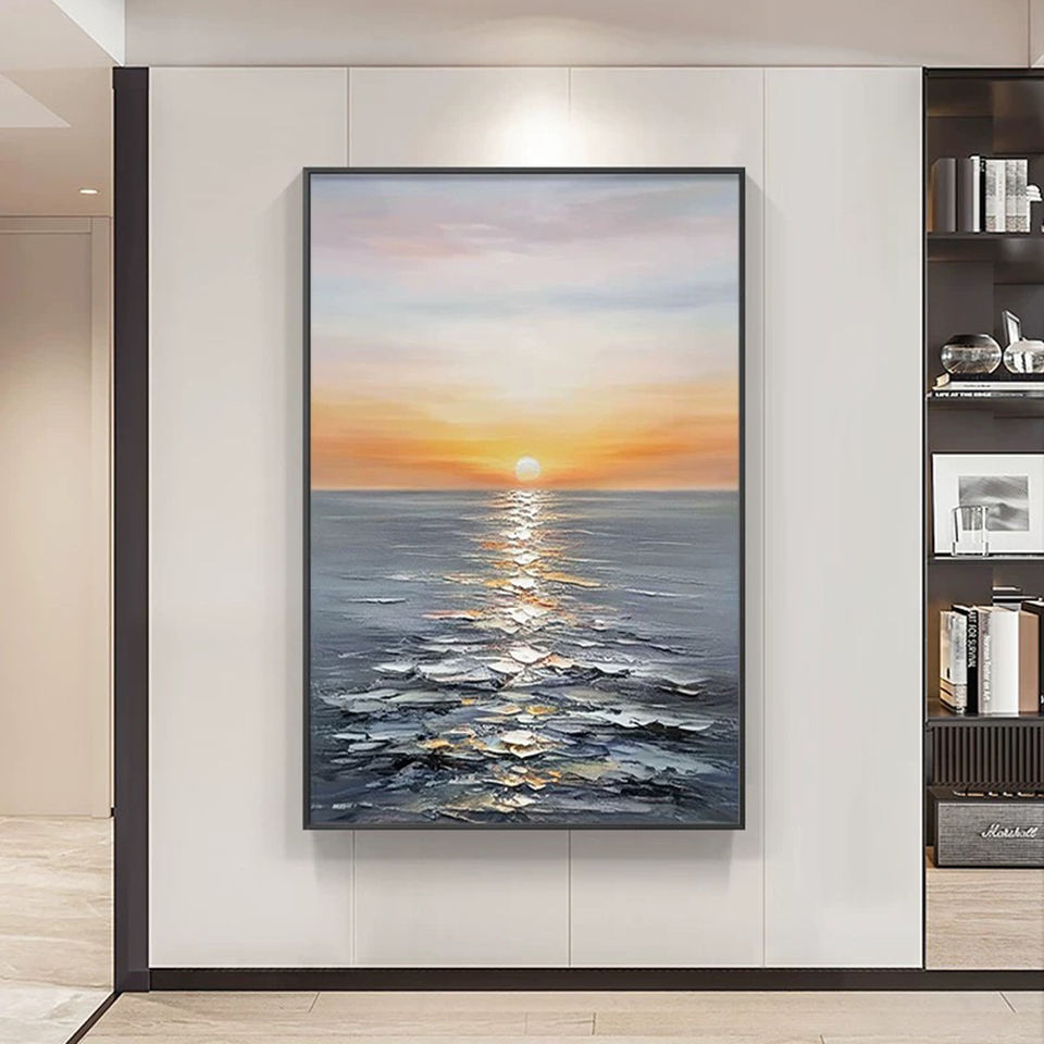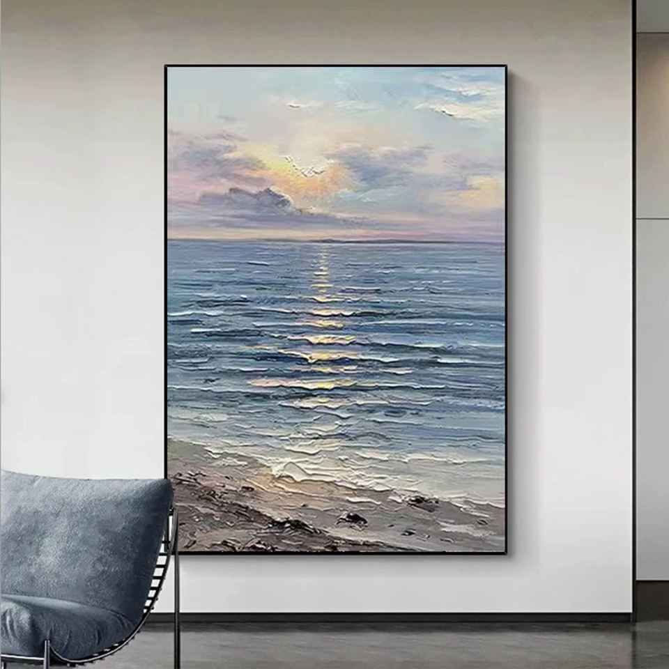 Dipinto a Olio su Tela Fatto a Mano, Arte Moderna di Paesaggi Marini, Scenografia Marina Testurizzata per Decorazione Murale del Soggiorno