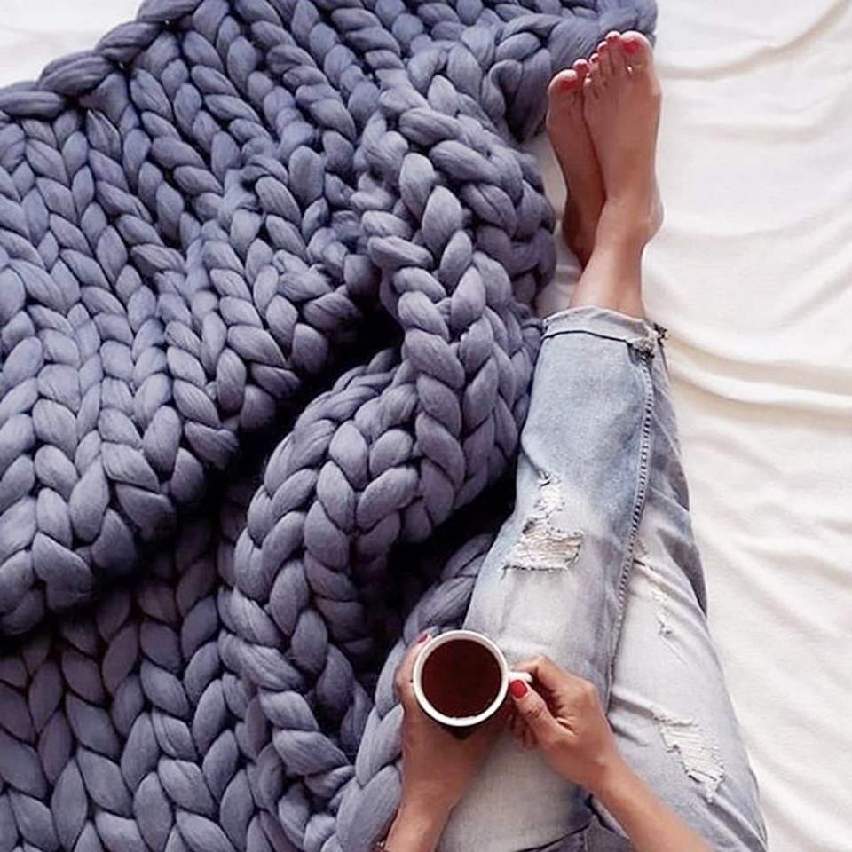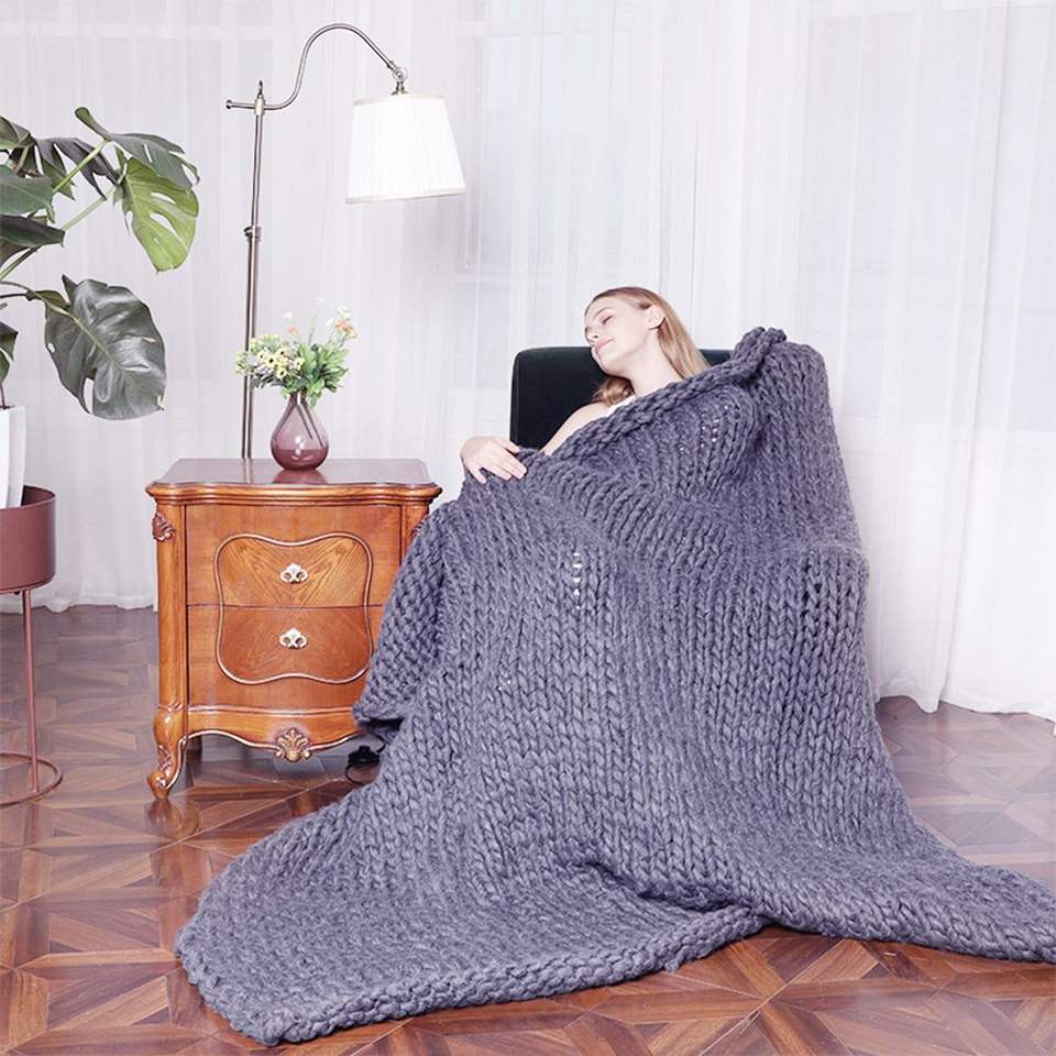 Coperta in Maglia Grossa Fatta a Mano 1,3*1,7m Grigio Scuro per Letto