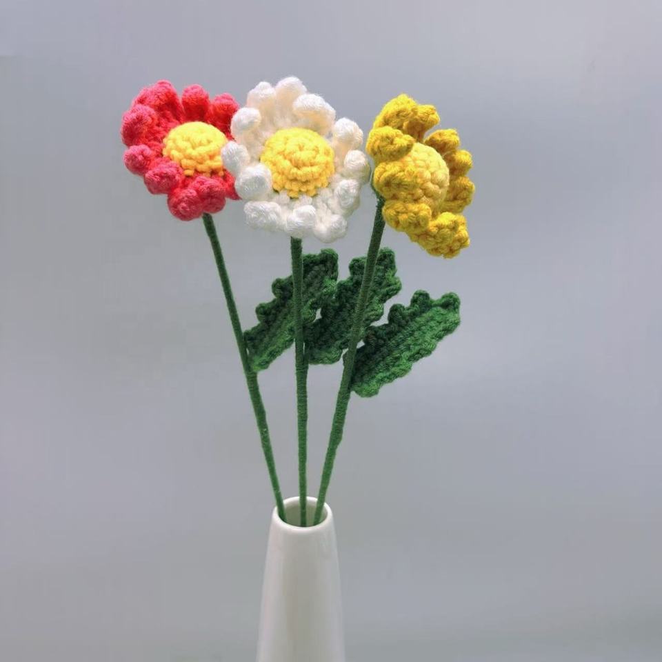 Bouquet di Margherite Multiple Fatte a Mano in Cotone all'Uncinetto, Steli Floreali Personalizzabili, OEM, Ingrosso, per Casa, Matrimoni, San Valentino, Pasqua
