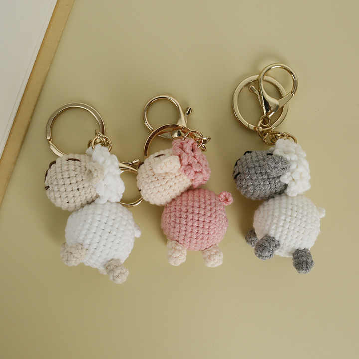 Portachiavi amigurumi pecora in poliestere all'uncinetto fatto a mano, ciondolo per borsa e regalo, MOQ>200 pz/col