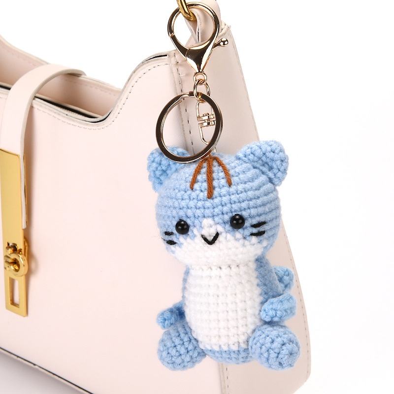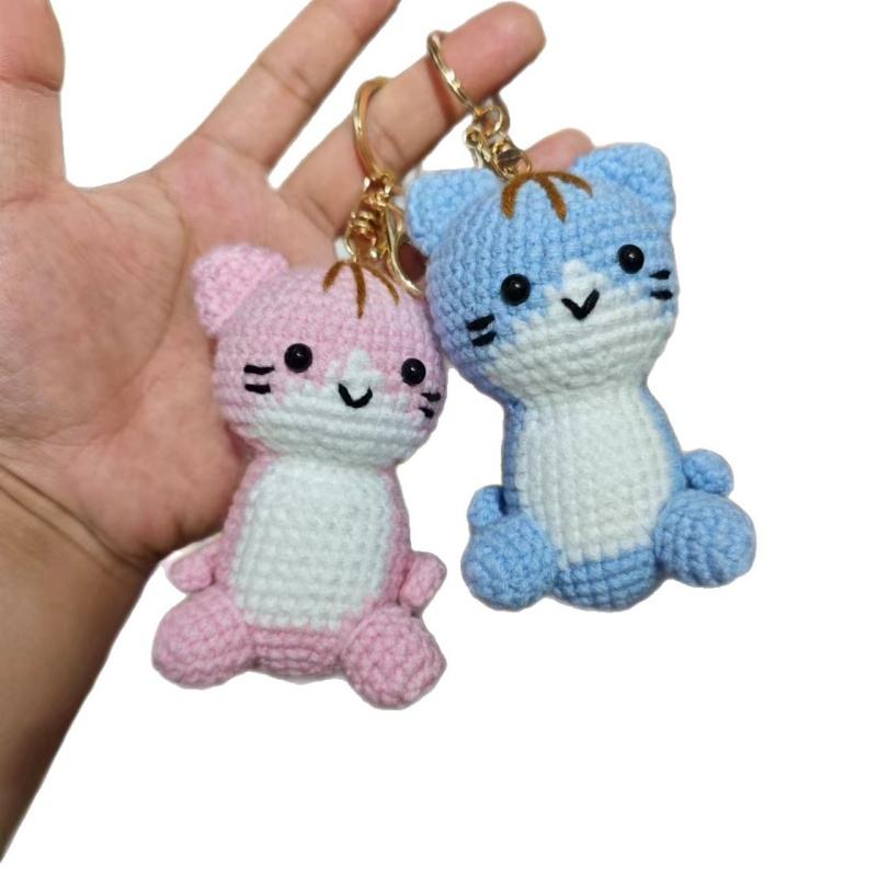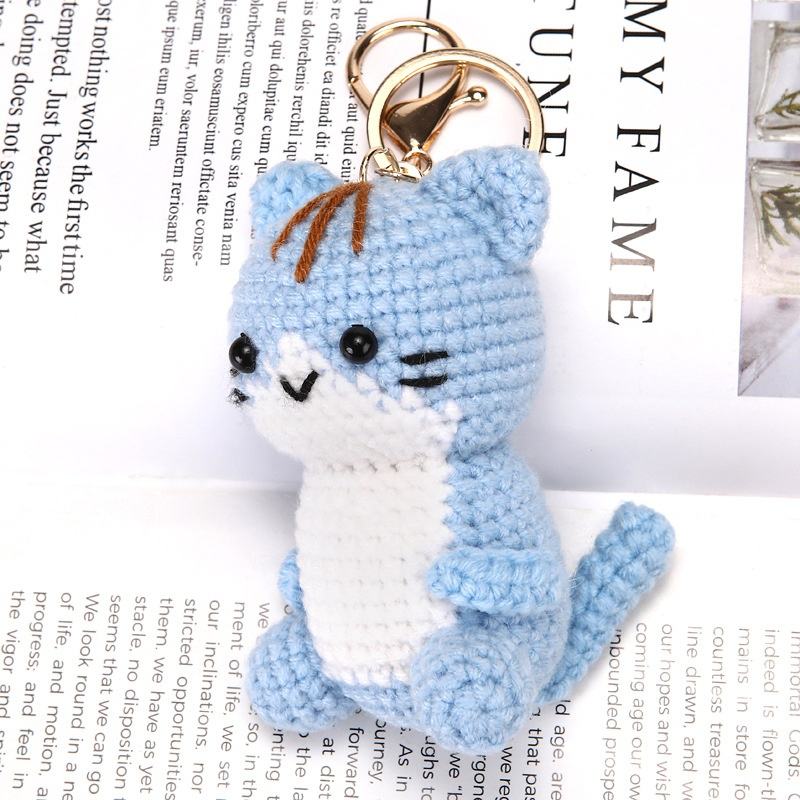 Portachiavi fatti all'uncinetto gatto fortunato Amigurumi animali di peluche giocattoli portachiavi bambola disegno a maglia 3d graziosi regali per ragazze