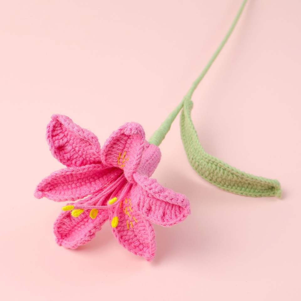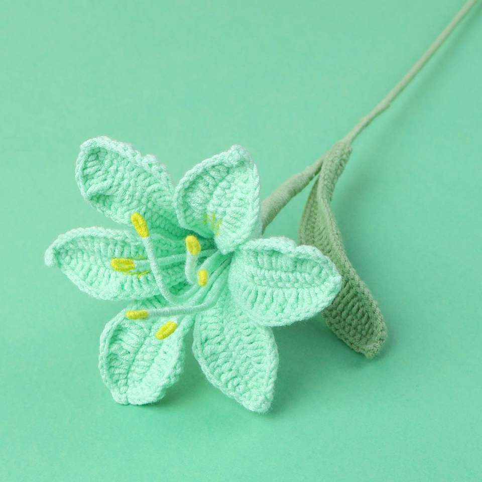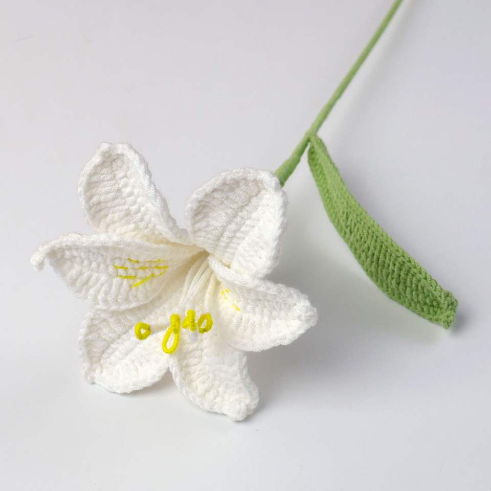 Bouquet di Fiori Artificiali all'Uncinetto Fatti a Mano - Ramo di Giglio a Sei Foglie per Matrimoni e Decorazioni per la Casa - Vendita all'Ingrosso