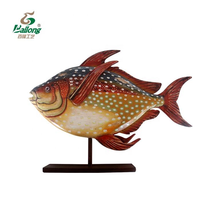 A mano su ordinazione della decorazione della casa in legno dipinto scultura di pesce