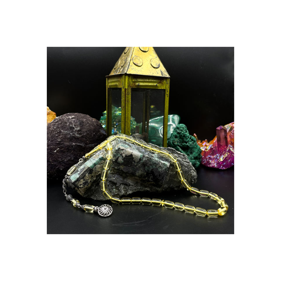 Perle di Preghiera in Ambra Fatte a Mano, 34 cm, Diametro 6,5 mm, Ambra 13,50 g, Peso Totale 19,29 g