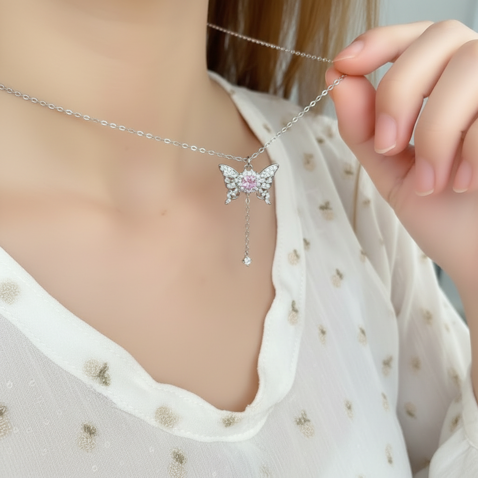 Handmade Elegant Women's & Girls' Key Flower Cross Necklaces Trending Punk Fashion with Rhodium Plating Hot Wholesale Sale